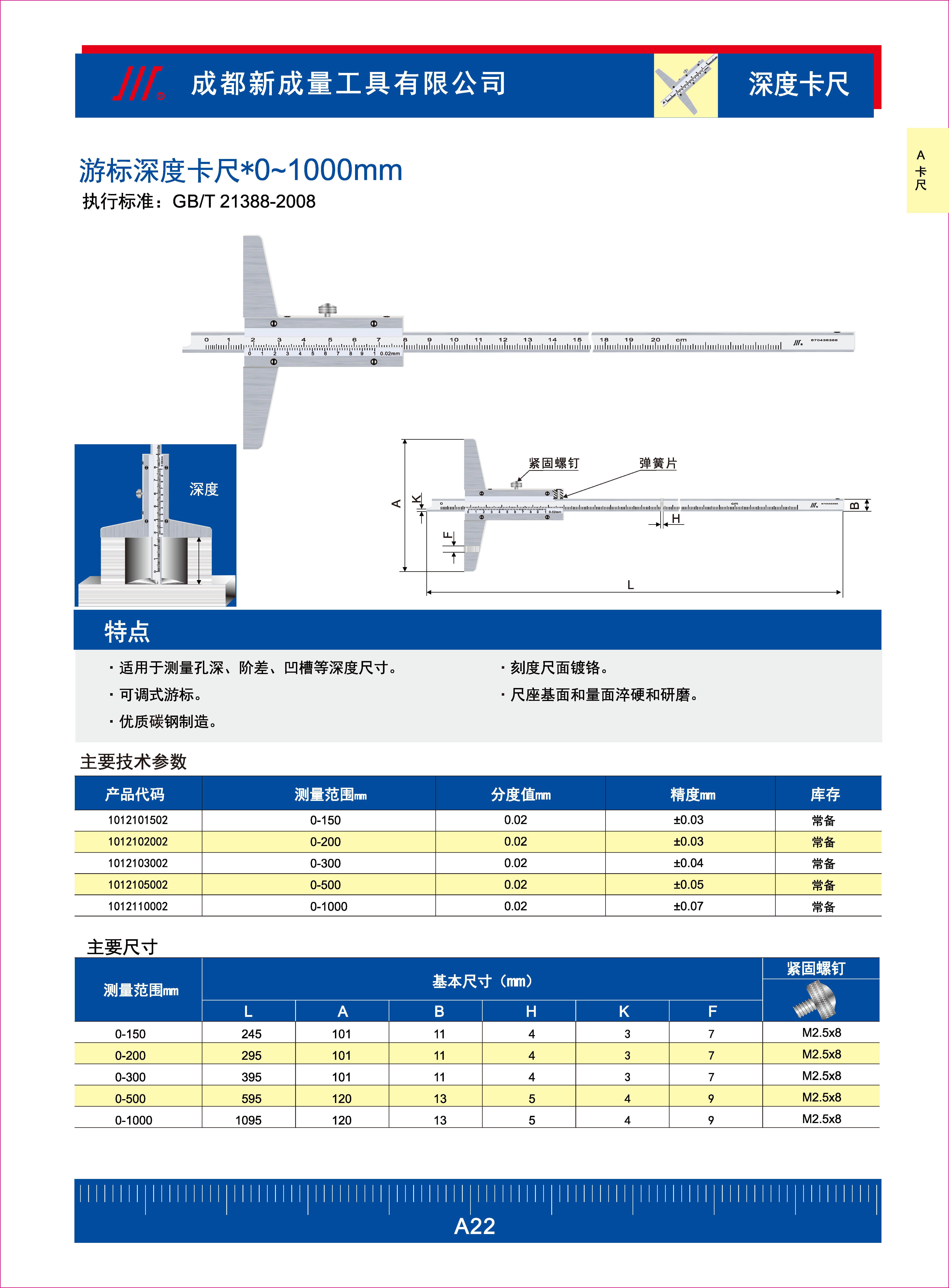 游标深度卡尺执行标准: GB/T 21388-2008