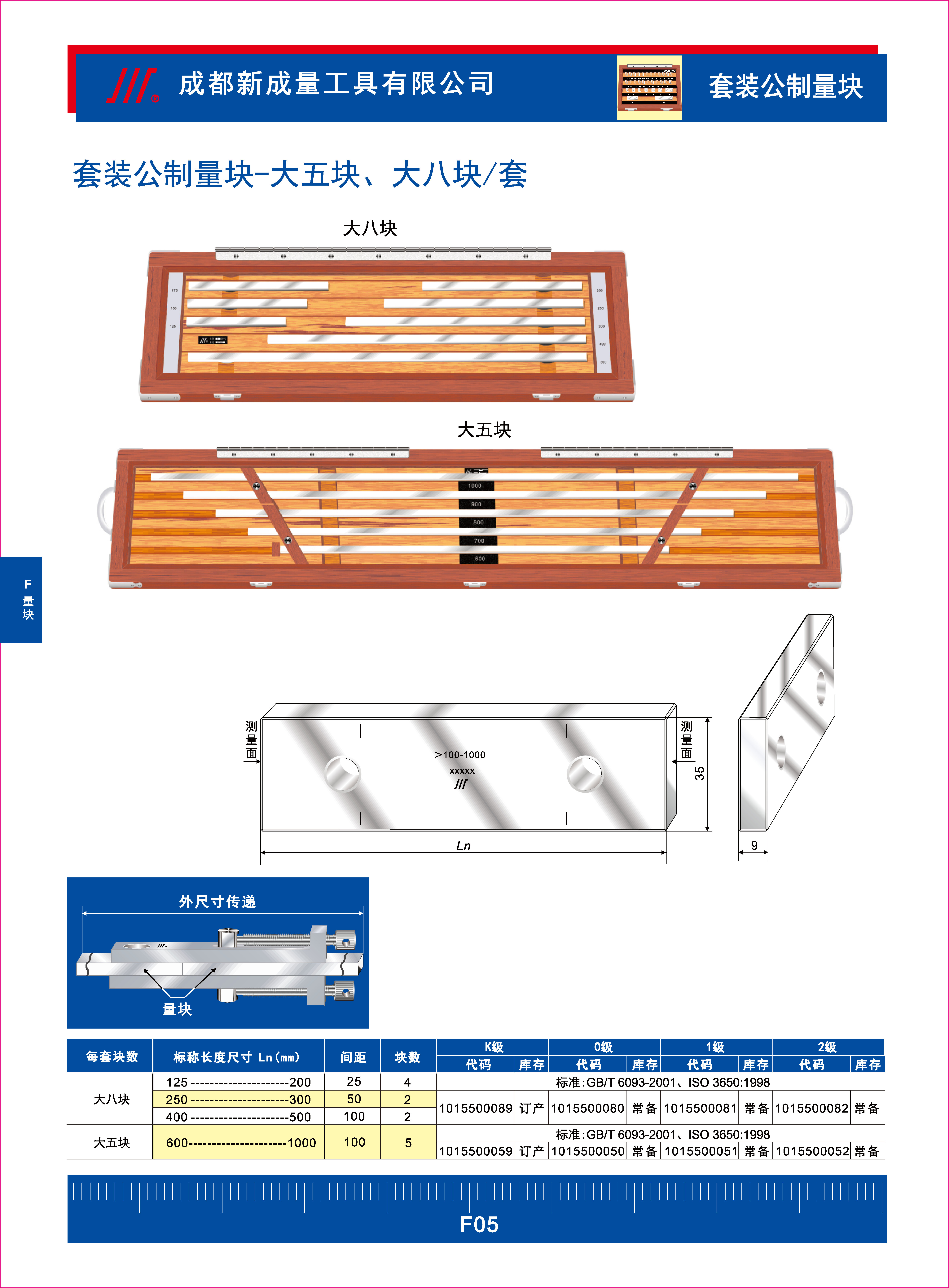 成量公制矩形量块*大8块/套 执行标准: GB/T 6093-2001-量块-成量-成都成量工具有限公司,成量,成量工具,卡尺,百分表,千分尺,量具,刃具