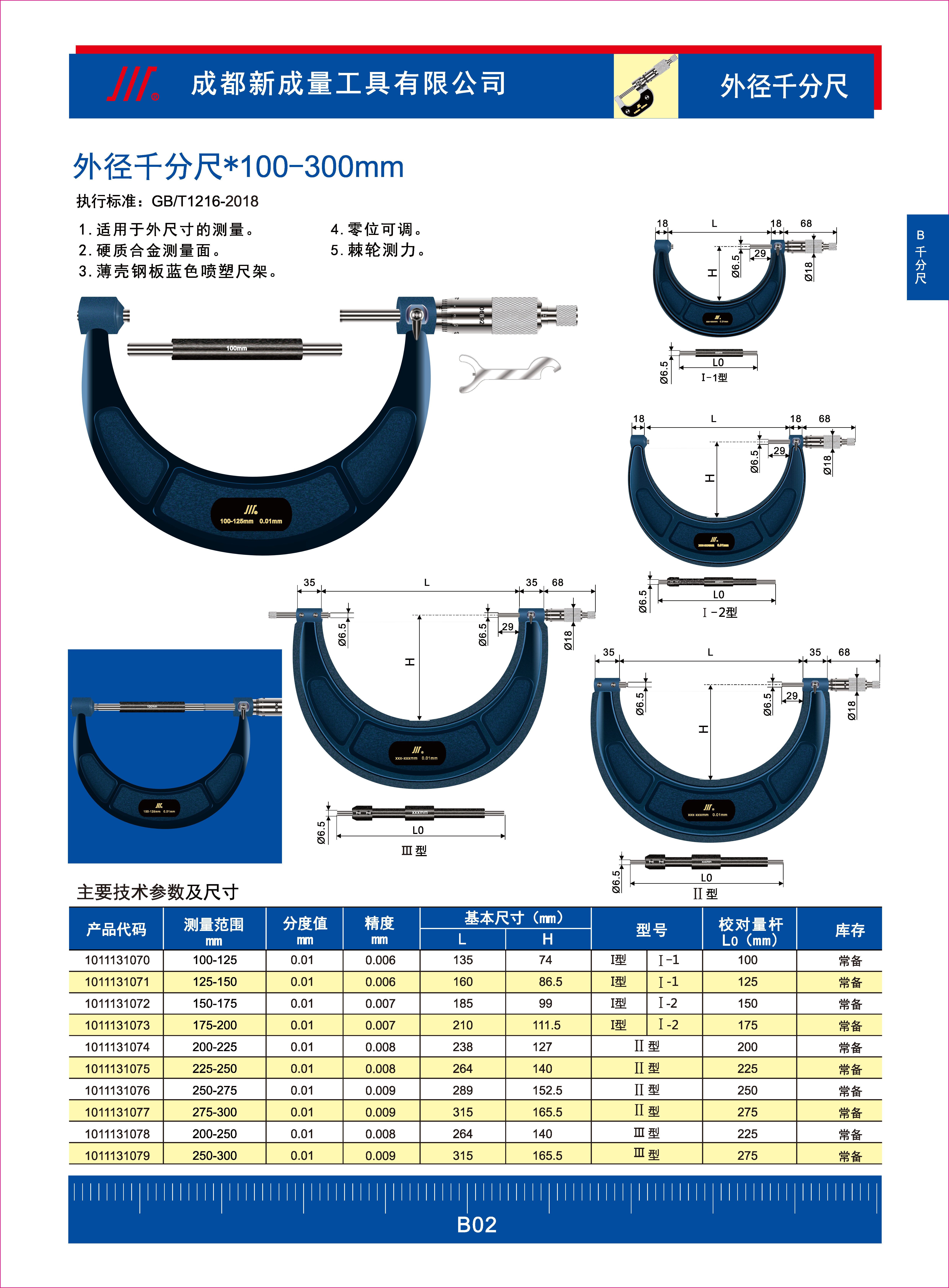 外径千分尺*100-300mmm执行标准: GB/T 1216-2004